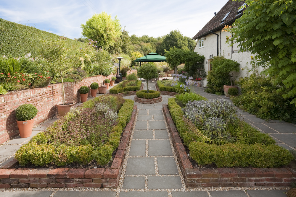 A beautiful herb garden, seating areas with views to relax and entertain. A functional yet beautiful vegetable garden really enhance this lovely period house at this smallholding.